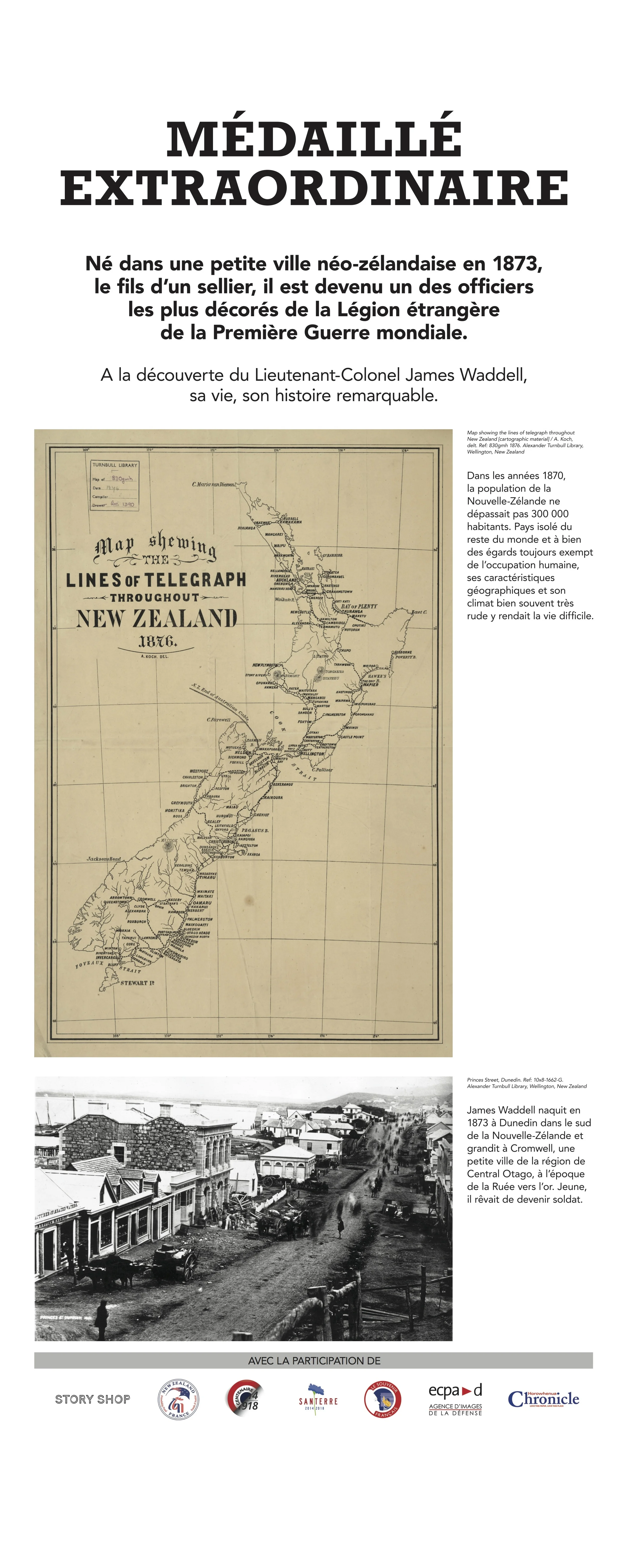 It tells the little known story of Lieutenant-Colonel James Waddell who was born in Dunedin, New Zealand, but fought under the French flag for the duration of World War I